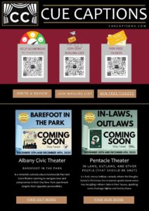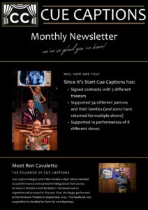 Cue Captions is such a wonderful initiative that I volunteered to be part of it. I’m passionate about giving back to my community, and helping make theater more accessible for Deaf and Hard-of-Hearing audiences feels like a meaningful way to contribute. To learn more about Cue Captions visit cuecaptions.com