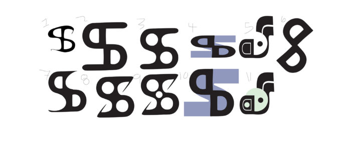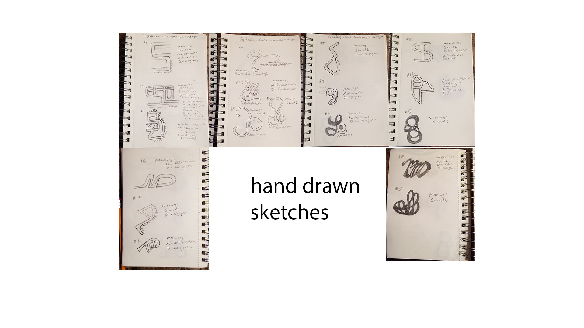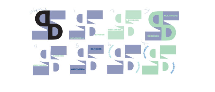 The second concept followed a similar path of discovery. This time I explored the idea of representing myself as mountains. To me, mountains symbolize strength and perseverance – qualities I’ve relied on while overcoming challenges in life, including returning to school in my forties as a single mother of three to pursue a new career. Like with the flower concept, I began with literal sketches of mountains and then abstracted them into a form shaped by my initials.