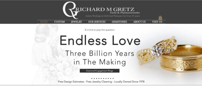 Pages I designed and built while working with Richard Gretz. Although I created many more than are shown here, this selection highlights the overall style and approach.